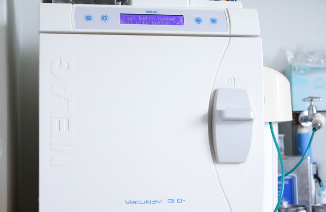 外観や内観の綺麗な医院は魅力的ですが、治療を行う上で重要なものは、医療の知識・技術と同時に、衛生環境の整備だと考えます。当院では、日本の多くの歯科医院が使用する高圧滅菌機よりも高規格の真空減菌機を導入するなど、使用する治療器具に合わせた専用の機械で消毒・滅菌することで院内感染の対策をしています。真空滅菌機の導入医院はまだまだ少ないですが、高い滅菌効果を期待できます。目に見えない部分だからこそ衛生面にも隅々まで配慮しています。