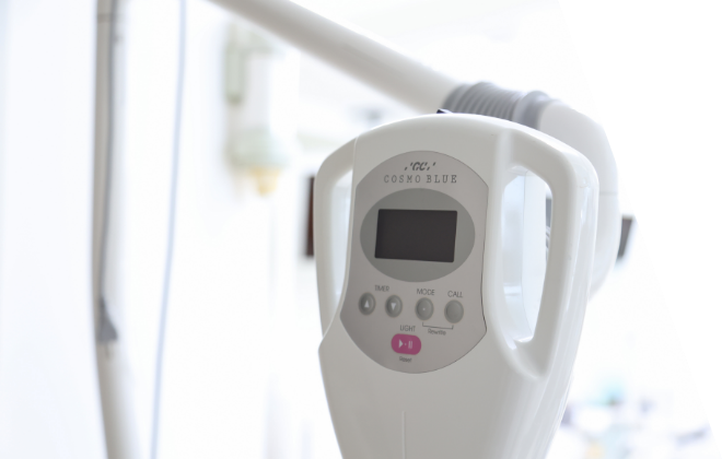 オフィスホワイトニングは院内で行うホワイトニングで、1時間程度の施術です。薬剤を塗布した歯に光照射を行い白くしていきます。さらに白さを増したい場合は併用でホームホワイトニングも追加できます。