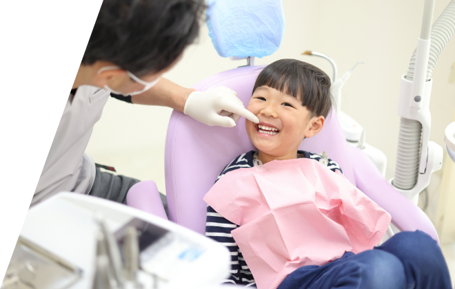 小児歯科はただ単にお子様の虫歯を治す歯科ではありません。成長を続けるお子様の歯の病気や異常を治療、予防をするだけが目的ではなく、お口の中の健康状態を維持も維持する事が目的です。乳歯に虫歯があるからと言って不必要な抜歯をすると、永久歯の歯並びに影響を及ぼしてしまう可能性もあり、正しい位置から生えてくるようにするために小さな頃から見ていくことが大切です。