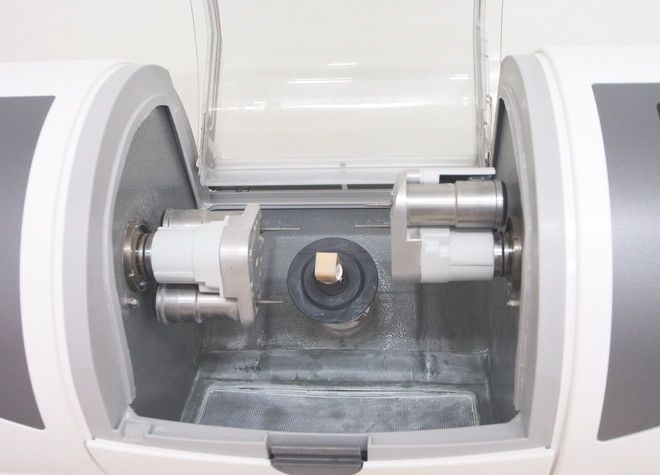 3D光学カメラを使用して治療する箇所をスキャンし、修復物をコンピュータで設計、そのデータをもとに自動でセラミックのブロックから修復物を削り出します。修復物を歯科技工所に依頼する必要がなく、すべての作業が院内でできるため、通常の修復物よりも経済的でスピーディーな治療が可能です。